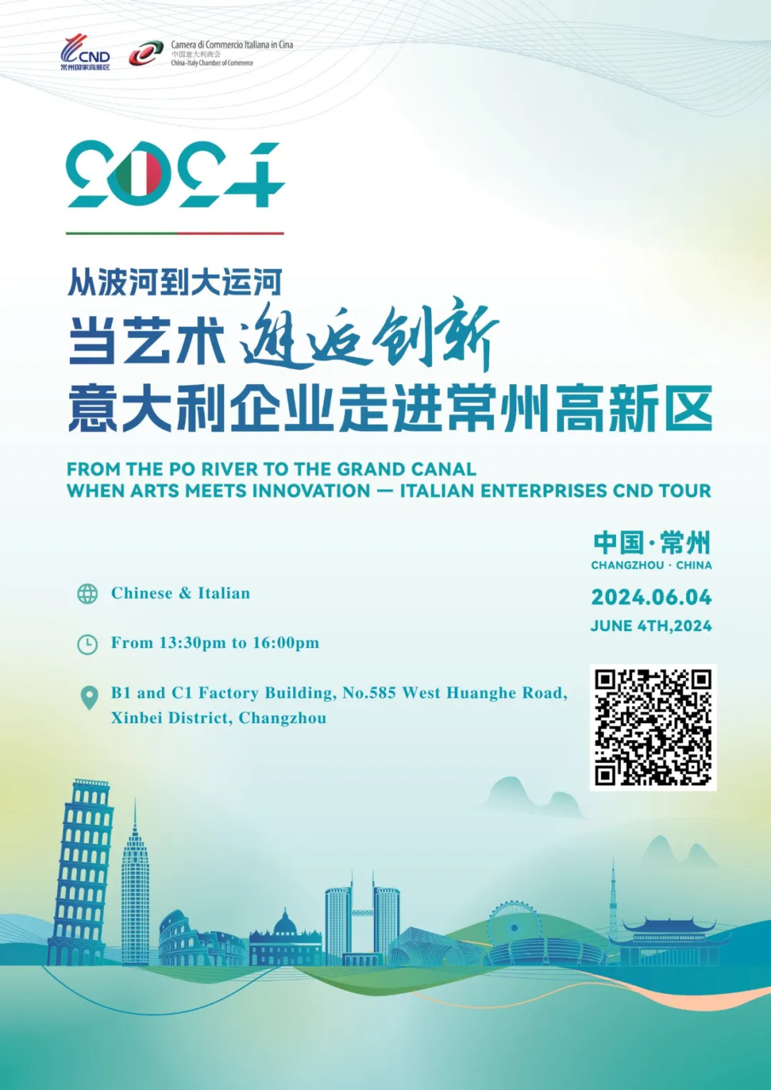The China-Italy Chamber of Commerce (CCIC) is pleased to extend an invitation to you for a visit to the Italian National Pavilion at the 6th Grand Canal Culture and Tourism Expo, scheduled to take place from September 13th-15th, 2024 at the Suzhou International Expo Center.