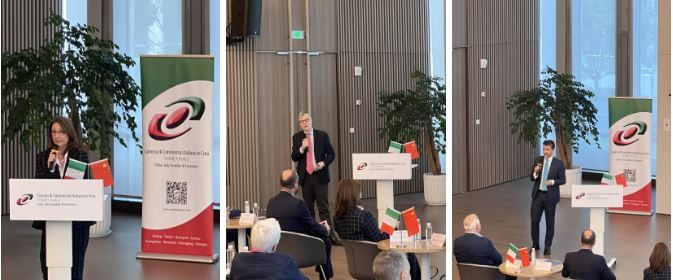 Institutional representatives — Consul General Tiziana D’Angelo, ITA-ICE Director in Shanghai Augusto di Giacinto, and SACE Head in China and East Asia Donato Morea — highlighted the importance of cooperation to support businesses in China.